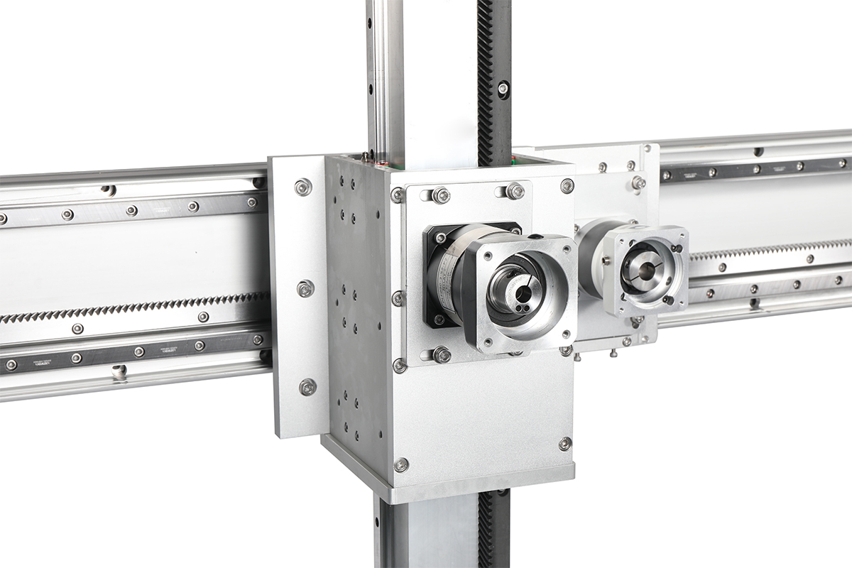 多軸齒條滑臺(tái)是可為設(shè)備提供直線運(yùn)動(dòng)的機(jī)械裝置,可以臥式使用也立式可使用,也可以組合成特定的運(yùn)動(dòng)機(jī)構(gòu),比如組合成十字滑臺(tái),把兩組按照X軸和Y軸的方向交叉成十字型。它的工作原理是通過一-組固定在另一組的滑塊上。即把X軸固定在Y軸上,X軸的滑塊作為運(yùn)動(dòng)對(duì)象,可以由Y軸控制滑塊的Y方向運(yùn)動(dòng),也可以由X軸控制滑塊的X方向運(yùn)動(dòng),通常由電機(jī)帶動(dòng)運(yùn)行。